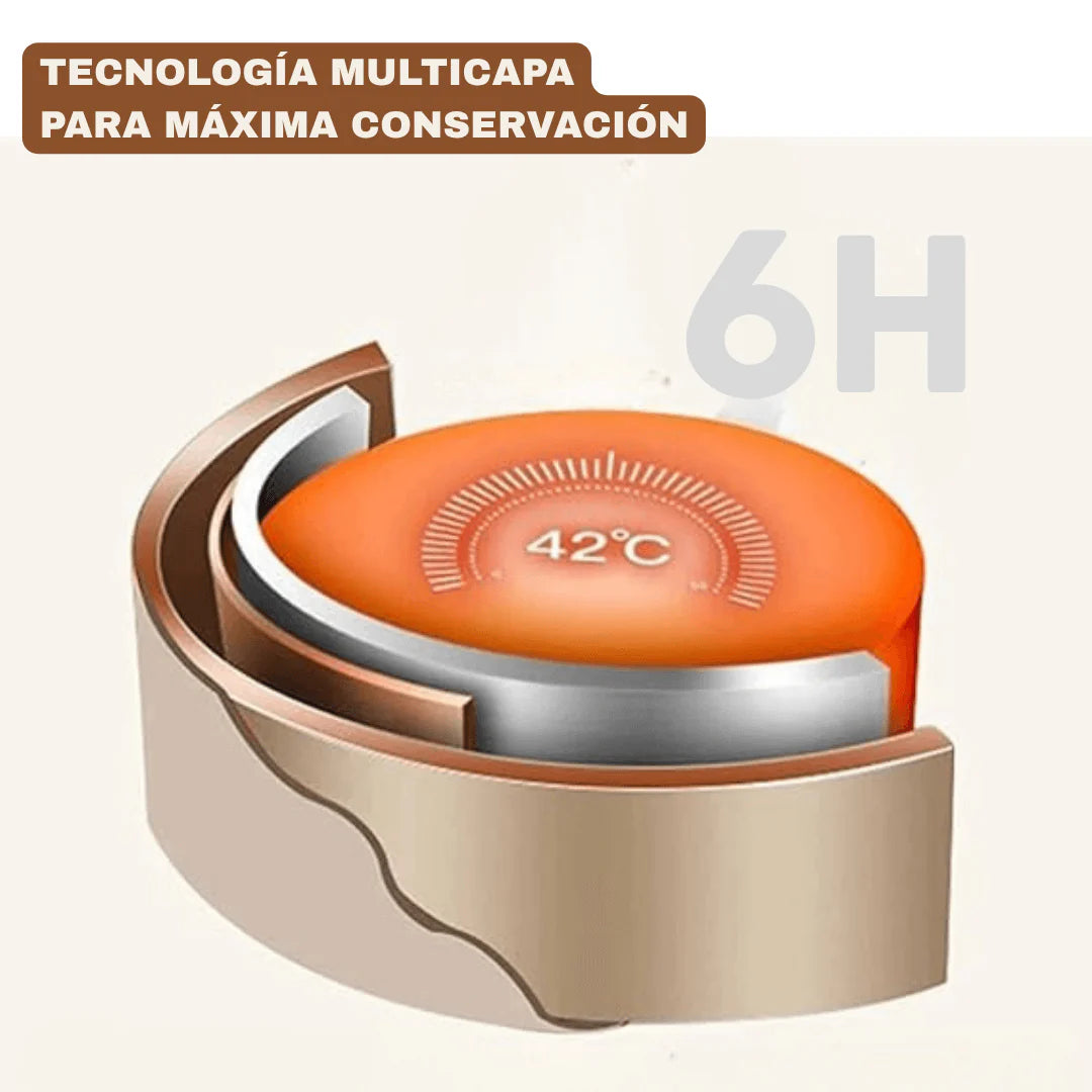 Sí. Gracias a su aislamiento térmico, conserva el calor por 6 Horas sin necesidad de recalentar.