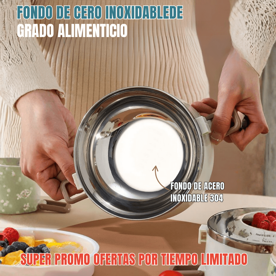 Es muy fácil de limpiar. Los recipientes se lavan con agua y jabón en segundos. Además, el acero inoxidable no retiene olores ni sabores, garantizando higiene y durabilidad por años.