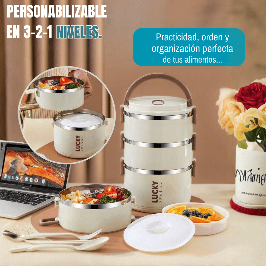 Por supuesto. Su diseño modular te permite usar uno, dos o los tres niveles según tus necesidades. Perfecta para porciones pequeñas o almuerzos completos.